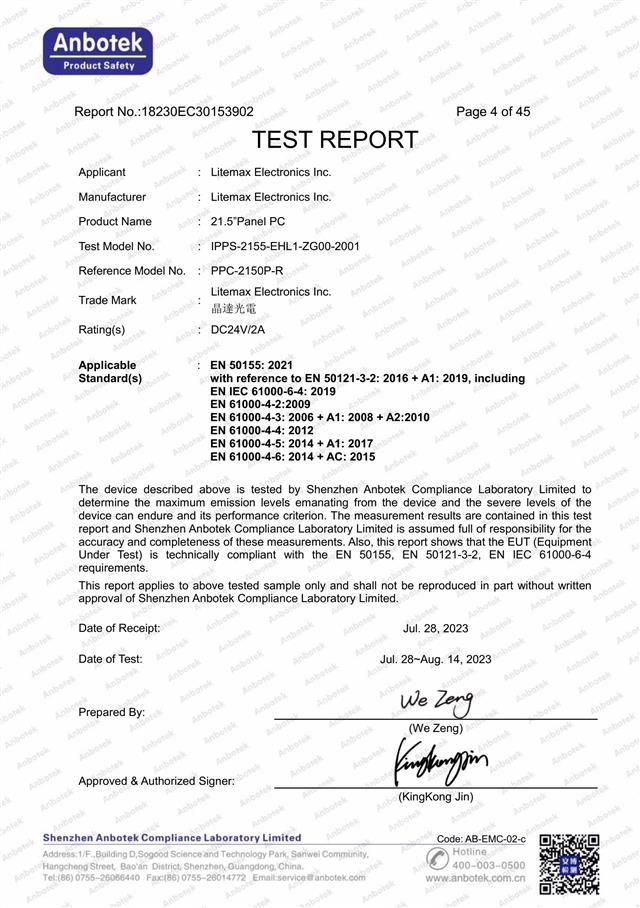 | Model Name | ITRP-2155-EHL1-ZG00-2001 | ||